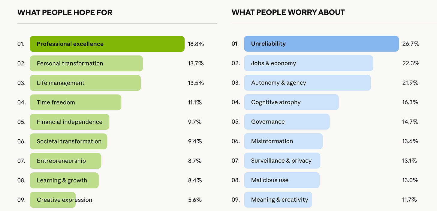 Anthropic just published what may be the largest qualitative study on AI ever conducted - 81,000 people sharing their hopes, fears, and lived experiences with AI.